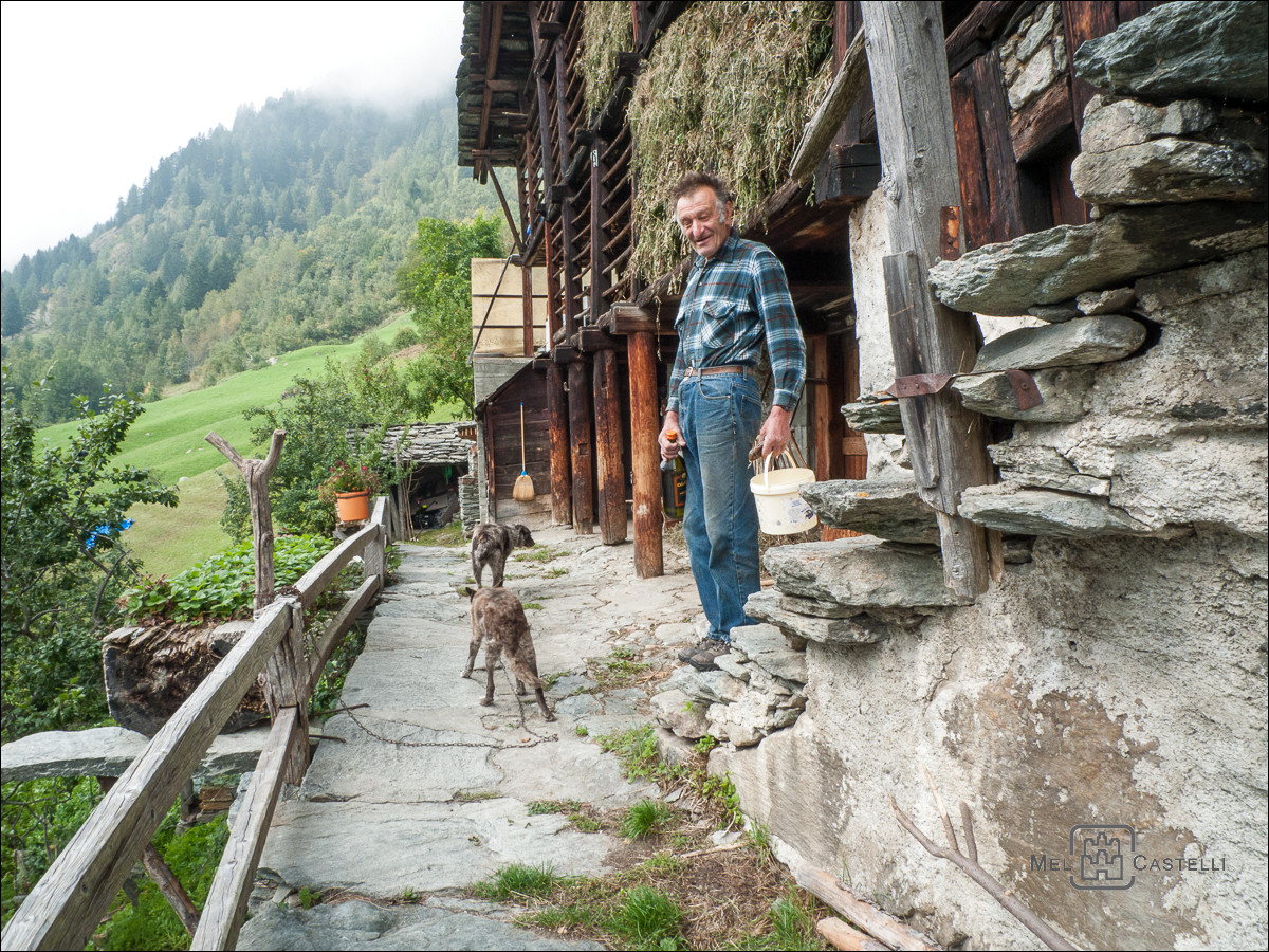 Ein Bauer, der walserisch-deutsches Italienisch sprach, was uns zu gestischer Verständigung übergehen ließ. Sein Italienisch klang total weich und verschliffen. Meine wenigen Sätzchen schien er jedoch verstanden zu haben, wie ich an passender Reaktion merkte.