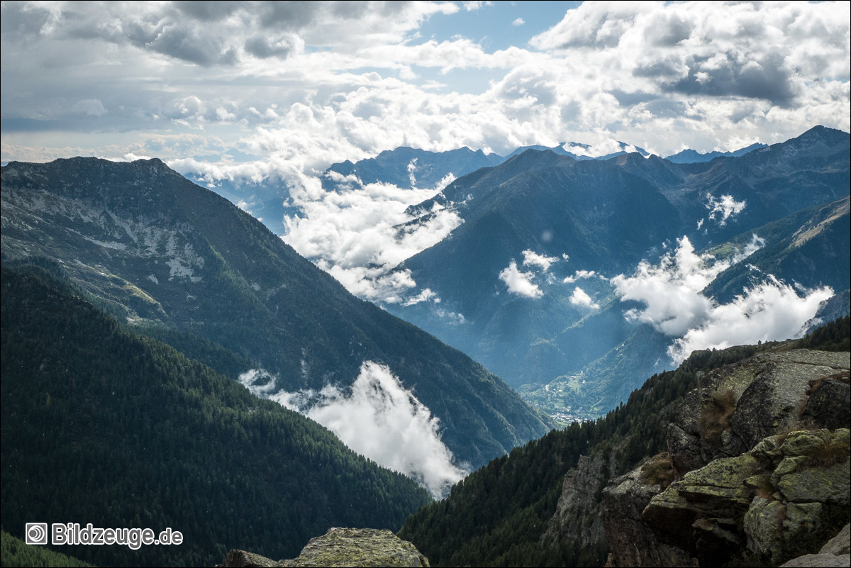 Nächste Scharte auf 2400 Metern ermöglicht einen Blick nach Westen ins Aosta-Tal.