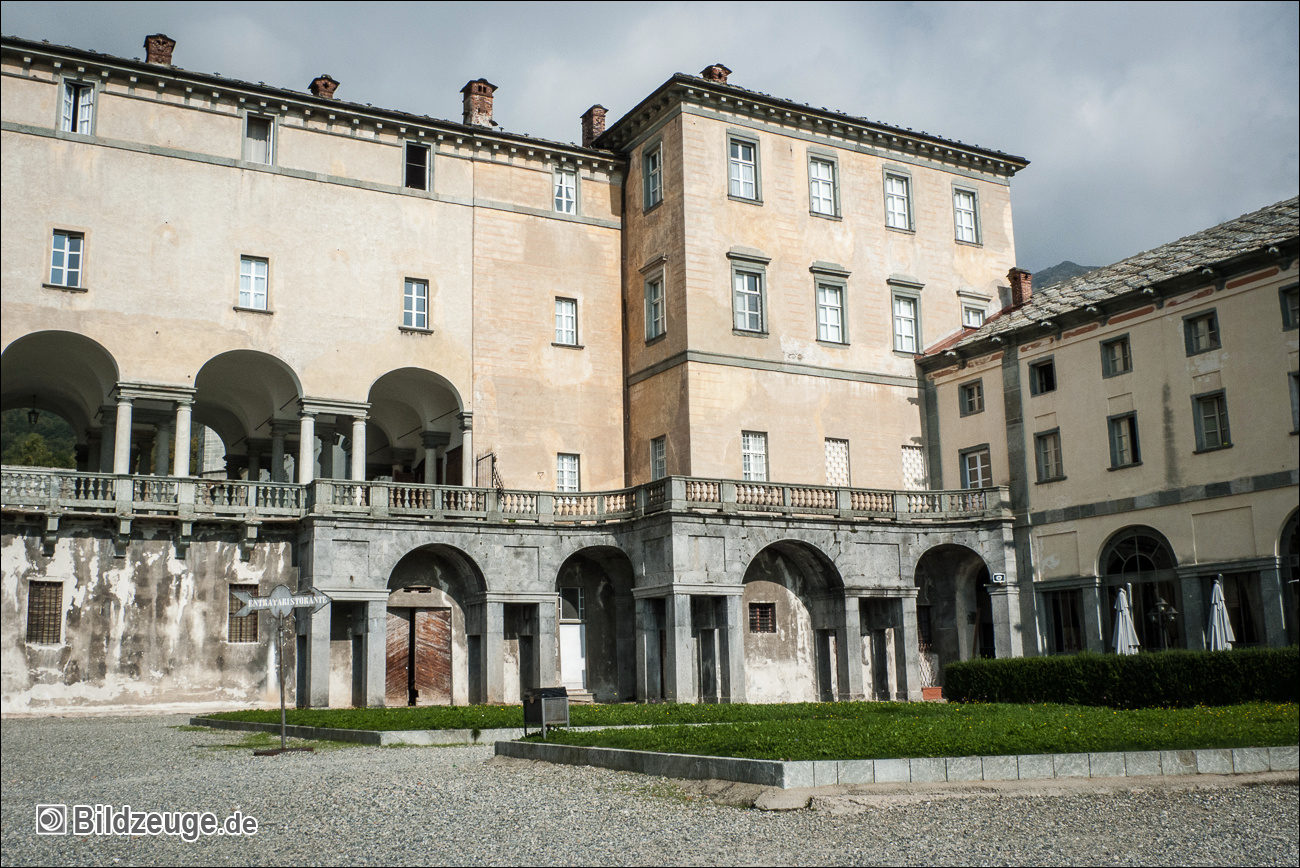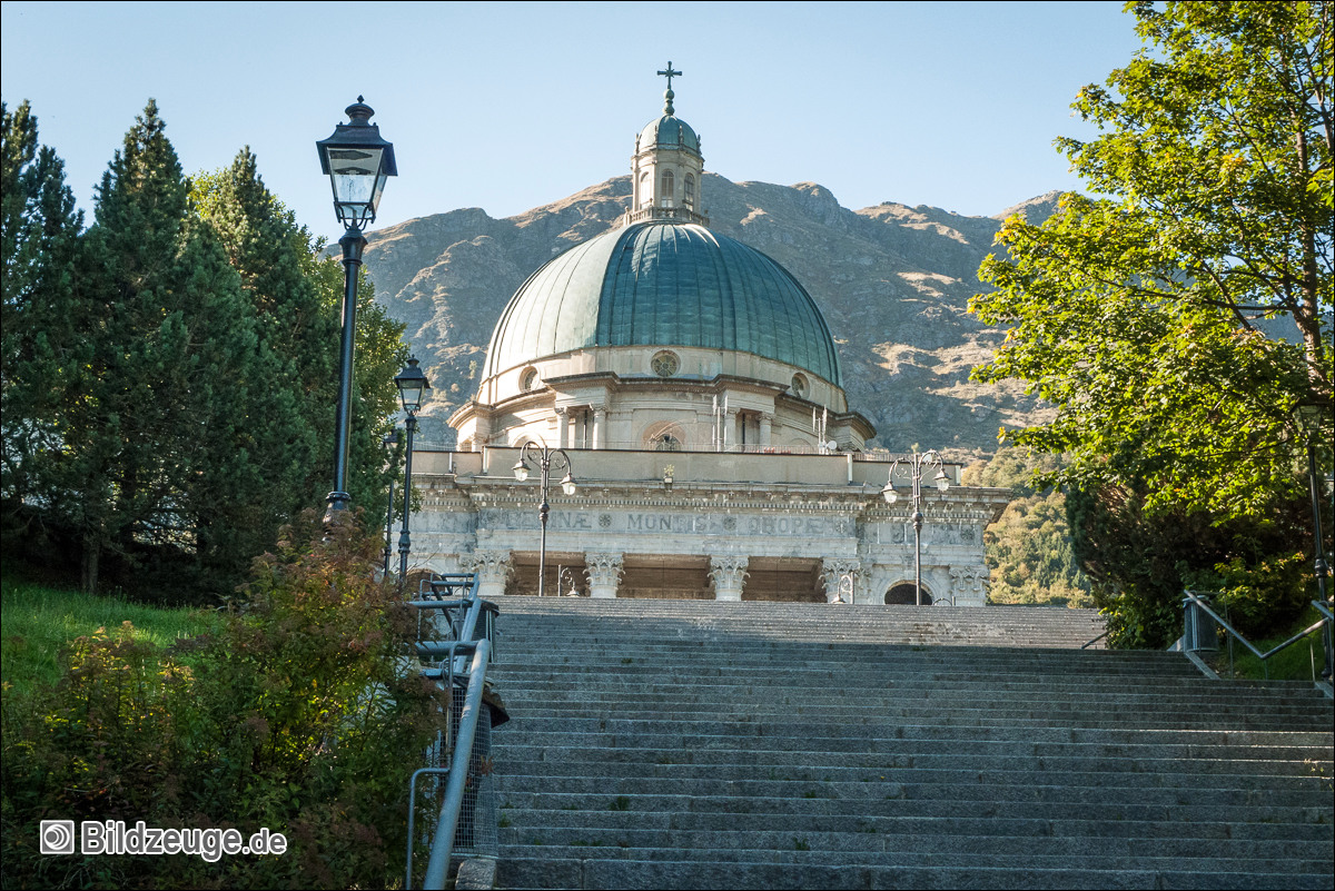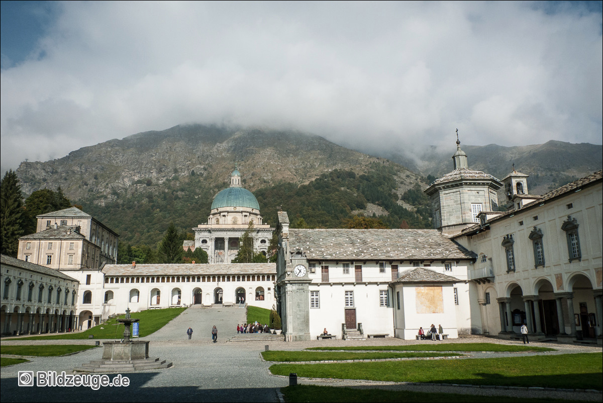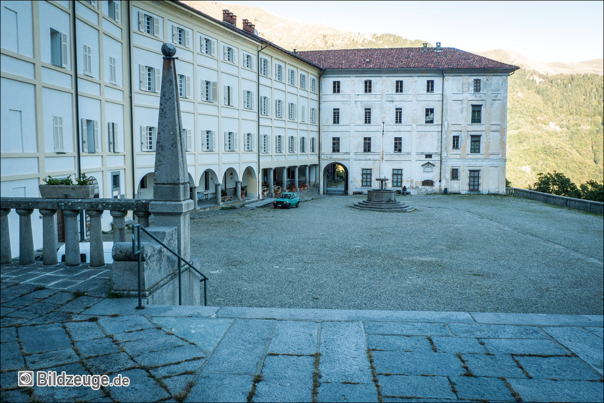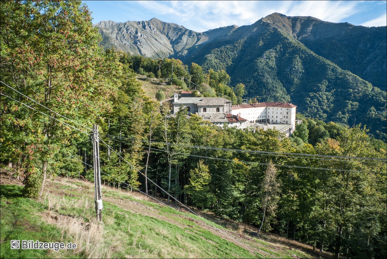 Ankunft in Oropa – ein Ort, der eigentlich nur aus Klosteranlagen und Nebengebäuden besteht und größte Wallfahrtsstätte der Alpen ist. Eigentlich wollten wir nicht Quartier nehmen, doch bot sich die Möglichkeit, von hier nochmals bei sonnigem Wetter Abschied von den Alpen zu nehmen und auf den ca. 2500 Meter hohen Monte Camino zu sausen. Rucksack abwerfen und los, denn so sind wir leicht wie die Gämsen!