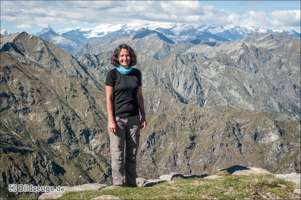 Wir konnten 360° um uns blicken – im Nordwesten den Mont Blanc, das Matterhorn nördlicher und hier schneebedeckt das Monte-Rosa-Massiv. Im Osten sahen wir die Ostalpen, also auch den Dolomitenbereich mit Schnee und im Süden den Kegel des Monviso.