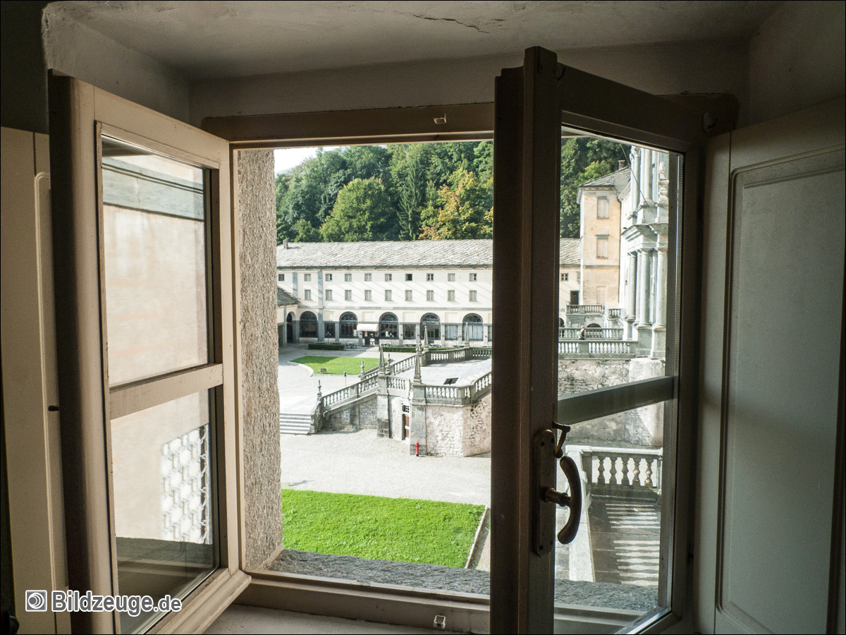 Blick in einen der gestaffelten Innenhöfe, doch das Fenster war zu klein, um die Hitze deutlich hinauszugeleiten.